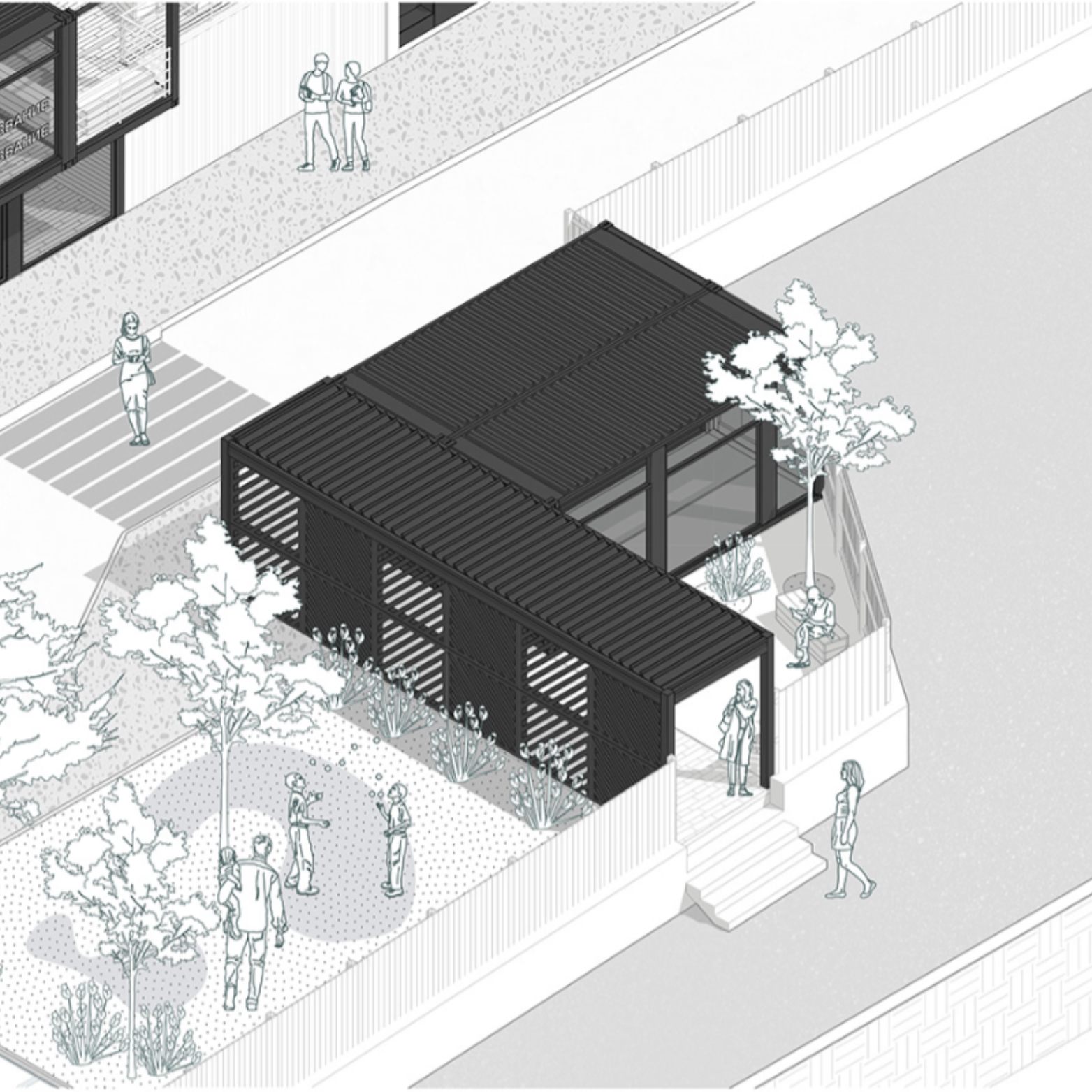 Front View (Social Living Room + Rooms) A